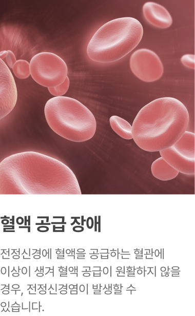 전정신경에 혈액을 공급하는 혈관에 이상이 생겨 혈액 공급이 원활하지 않을 경우, 전정신경염이 발생할 수 있습니다.